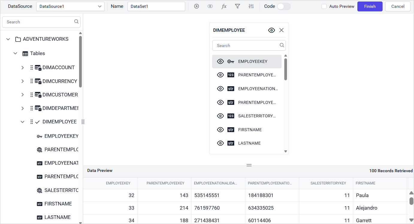 Click Finish to save the data source with a relevant name to proceed with designing report.